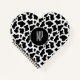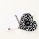 Dieses niedliche Notizbuch in Herzform wird mit einem Schwarz-Weiß-Kuh-Druck mit Beispielinitialen gezeigt. Passen Sie dieses Element an, und ändern Sie den Beispieltext in Ihr Bild.