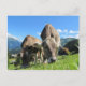 Graue Kühe fressen Gras mit einem schönen blauen Himmel und Bergkulisse im Hintergrund. Großartiges Geschenk für Mutter, Vater, Schwester, jede andere Verwandte, geliebte Person, selbst zum Geburtstag, Jahrestag, Weihnachten oder an jedem anderen besonderen Tag.