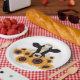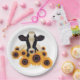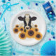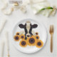 Dieser Pappteller ist mit einer Kuh und Sonnenblumen entworfen. Groß für Partys, Picknicks oder irgendwelche kommen Sie zusammen.
