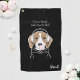 Das Design zeigt einen entspannenden Beagle mit Kopfhörern und blühendem rosa Bublegum. Mit Ihrem personalisierten Text und der bevorzugten Hintergrundfarbe ist es ein niedliches, lustiges und einzigartiges Golfhandtuch für Hundefreunde.