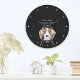 Das Design zeigt einen entspannenden Beagle mit Kopfhörern und blühendem rosa Bublegum. Mit Ihrer personalisierten Lieblings-Dunkelhintergrundfarbe ist es eine niedliche, lustige und einzigartige Uhr für Hundefreunde.