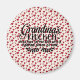 Spaß Kühlschrankmagnet. Oma's Küche - gutes Essen täglich mit einem mitreißenden Löffel Liebe serviert. Hintergrund der roten Herzen.