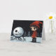 Treten Sie ein in eine zauberhafte Winterszene mit unserer Weihnachtskarte "Chilling Companions"! Diese bezaubernde Illustration zeigt einen seltsamen Jungen in einem gestreiften roten Pullover und eine Weihnachtsmannmütze, stehend neben seinem seltsamen Freund, einem großen, lächelnden mondähnlichen Wesen mit zwielichtigen Beigaben. Set vor einer ruhigen Kulisse von schneebedeckten Bäumen und einem Sternenhimmel, diese Karte erfasst das Wunder und die Merkwürdigkeit der Urlaubssaison. Es ist der perfekte Weg, den Lieben dieses Weihnachtsfest einen herzlichen und doch etwas spöttischen Gruß zu schicken!