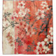 Kühle Kunstwerke mit roten und cremefarbenen Streifen und Sakura. Das Design verbindet Shabby Chic mit japanischem Wabisabi und würde in einem Maximalismus großartig aussehen.