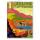 Vintage Werbungsillustration für einen Gesundheitserholungsort in Kuling, China. "Bei 4000 über Meeresspiegel." Hell und Spaß zeigt ein chinesisches Paar, das Schwimmer auf einen Erholungsort mit Wasserfällen im Hintergrund auf dem Jangtse in einer Gebirgsregion der China betrachtet.
