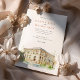 Mit dieser wunderschönen Aquarellhochzeit laden Sie Ihre Gäste zu einem kulinarischen Fest in der Stadt ein, das das prächtige Kulturzentrum von Chicago zeigt. Das Kunstwerk vereint elegant die klassische Architektur dieser historischen Sehenswürdigkeit, die in einem sanften, raffinierten Aquarellstil gestaltet wurde, der die Grandeur und die faszinierenden Details unterstreicht. Das Gebäude ist in warmen Cremes, Beige und hellbraunen Tönen gehalten, das Dach ist grau-blau. Künstlerische Darstellungen von Blattwerk bilden einen anmutigen Rahmen: auf der einen Seite schlanke Äste mit Touchs von herbstorangen, gelben und roten Blätter, auf der anderen zarte grüne Blattsprigs. Am Boden hängen üppig grüne Büsche. Diese Einladung ist ideal für Paare, die eine klassische, kultivierte und urbane Hochzeitsästhesie suchen. Die Vorderseite präsentiert elegant Ihre Hochzeitsdetails, während die Rückseite "The Finer Details" für Gästeinformationen anbietet. Die Farbpalette vereint herrschaftliche Cremes und Beige, architektonische Grau- und Blues mit frischen Grüntönen und warmen Herbstakzenten.