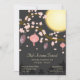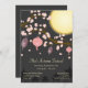 Mitten im Herbst Festival Design mit einem blühenden Baum und rosa und lila Laternen. Vollmond auf dunklem Hintergrund.