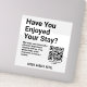 Ermutigen Sie Kunden, eine Überprüfung verlassen. Nachricht lautet: "Wir hoffen, dass Sie eine angenehme Erfahrung mit uns bleibe haben. Wenn ja, nehmen Sie sich bitte ein paar Augenblicke Zeit, um eine Rezension verlassen." Ändern Sie den Wortlaut in Anzug Ihrer Anforderungen. Ändern Sie den Link QR Code auf den Link, der zu Ihrer eigenen Rezensionsseite führt. Wenn Google dies tut, erhalten Sie Ratschläge: https://tinyurl.com/5ydtb22k