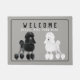 Niedliche Fußmatte, die eine Illustration des Schwarzweiss-Pudels kennzeichnet. Kundengerechte Hintergrundfarbe und -texte. Perfektes Geschenk für den Hundeliebhaber oder den Pudel-Eigentümer.