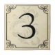 Benutzen Sie diese kundengerechte Zahl- oder Buchstabefliese, um Straßenadressenzahlen, letzte Namen oder andere personalisierte Wohngestaltung herzustellen. Vintager beige Hintergrund mit dekorativem schwarzem Rahmen.