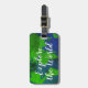 Kundenspezifische Weltkarte-Gepäckanhänger mit Reisezitat. Vintager Planetenerdkugelentwurf mit stilvoller Bürstentypographieschablone. Erforschen Sie die Welt, Ihr Abenteuer erwartet! Personalisierte Aufkleber für Taschen und Koffer. Geburtstaggeschenkidee für internationalen Reisenden und Forscher. Fügen Sie Ihre Adresse auf der Rückseite hinzu oder addieren Sie eine Visitenkarte. Schließt Lederband für Zubehör mit ein.