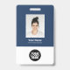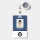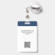 Dieses Custom Employee Name Abzeichen kann einfach mit Foto, Qr Code und Business Logo personalisiert werden. Ein einfaches Business-Design in marineblau-weißer Farbe, das in Vorder- und Rückengrößen vollständig anpassbar ist, serifenlose, einfache und moderne Schriftart und ein berufliches und klares Aussehen. Erhältlich mit Lanyard, Metallklammer oder mit Retraktikett. Keine Mindestbestellung.