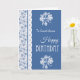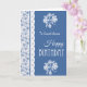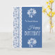 Eine sehr hübsche, mit einer Indigo-Blaublumengrenze zu personifizieren Geburtstags-Karte, trimmte mit Imitat sich schnüren, auf der vorderen Abdeckung und einem zusammenpassenden Motiv auf dem Innere, in dem Sie die Mitteilung auch personifizieren können. Dieser Entwurf ist ein Teil der vornehmen und Painterly "Indigo" Sammlung.