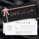 Kundenspezifisch, Geschenkgutschein mit Ihrem Namen, Firmendetails und Logo. Mit diesem eleganten und stilvollen Geschenkgutschein mit einem luxuriösen schwarz-rosa, ergänzt durch ein modernes schwarzes Band und ein Bogen-Design vermitteln Sie einen bleibenden Eindruck. Dieses Zertifikat eignet sich perfekt für verschiedene Unternehmen, darunter Kosmetiksalons, Wellness-Center und persönliche Pflegedienste. Es ermöglicht die einfache Anpassung wichtiger Details wie: Firmenname und Adresse Empfänger und Absender-Information Wichtige Funktion: Die Vorlage enthält einen speziellen Bereich für das Hochladen Ihres Firmenlogos, um sicherzustellen, dass Ihr Branding herausragt. Ideal für: Wellness- und Beauty-Unternehmen Wellness und Wellness-Center-Services Event oder erlebnisorientiertes Gießen Dieses Design verbindet Professionalität mit Eleganz und macht es zu einer vielseitigen Wahl für alle Geschäftszweige, die ihr Geschenkerlebnis verbessern möchten. Lass deinen Kunden ihre Geschenke stilvoll mit diesem Premium Zertifikat Template!