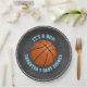 Kundenspezifischer/personalisierter einzigartiger Babyduschen-Papier-Teller mit Basketball in der Mitte und in ihr ist ein Junge. Blaue und weiße Farben. Editable Schablonenpapier-Teller - addieren Sie einfach Ihren Text! Get zusammenpassende napinks, Einladungen und Aufkleber!