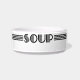 Kunst-Deko-Streifen und die Wort Suppe in Schwarzweiss