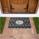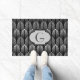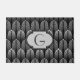 Fußmatte in einem Vintagen Kunst-Dekotapetenmuster basiert auf einer stylized Feder - Schatten des silbernen Graus/des Graus auf einem schwarzen Hintergrund mit kundengerechtem Monogramm