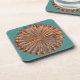 Kunst-Deko metallisch, kupfernes Blumenmedaillon auf einem aquamarinen, grünen Hintergrund.