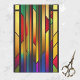 Im Jugendstil gehaltenes Glas mit Bio und kurvilinearen Formen. Ausgerendert in lebhaften Farben, mit reichhaltigem Grün, lila, Gelb und Rot, und Set vor einem Hintergrund geometrischer Linien. Dieses Design mit modernster Technologie und geometrischen Linien und einem Jugendstil wird visuell atemberaubend. Es verbindet natürliche und geometrische Elemente zu einem harmonischen und auffallenden Kunstwerk.