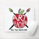 Ein mousepad für die Kunstlehrer, die eine Illustration eines roten Apfels mit gemaltem Text "KUNSTLEHRER" im Weiß kennzeichnen. Zwei Bürsten gekreuzt hinter dem Apfel. Ein Malerpinsel mit roter und weißer Farbe, eine mit Grün. Personifizieren Sie mit Ihrem Namen unten im Schwarzen.