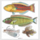 Atemberaubende, detaillierte illustrierte Skizzen tropischer Fische. Mit vier die Aufklebern auf einem Vinyl-Blatt. Jeder Aufkleber ist die und zum Abziehen und Kleben bereit. Wasserdicht. Perfekte Aufkleber für Autos oder Rückenaufkleber.