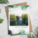 Moderne, individuell bedruckte Weihnachtskarten mit einer einfachen DIY-Vorlage zum Anpassen. Dieses künstlerische Design hat einen abstrakten Spritzer Hintergrund in Grün- und Blautönen. Fügen Sie Ihr Foto, persönliche Begrüßung, Namen und das Jahr. Verwenden Sie die Entwurfswerkzeuge, um die Schriftart und Farben zu bearbeiten. Die Rückseite hat Platz, um mehr Fotos und Text hinzuzufügen.