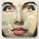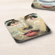 Einzigartige coole abstrakte Kunstgrafik mit nahem Frauengesicht-Untersetzer. Hübsche Augen und Lippen. generativekonzerner Inhalt
