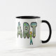 Künstlerisches Malerdesign zeigt einen Künstler, der einen Pinsel und eine Palette hält, der an einer Landschaft arbeitet, die in den Buchstaben ART enthalten ist. Es ist keine großartige Kunst und wird vielleicht nie fertig gestellt, aber es ist Kunst für jeden, der einen Pinsel halten kann. Feiern Sie den Künstler in Ihnen.