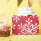 Weihnachtsgeschenkpapier mit dekorativen weißen Schneeflocken auf farblich bearbeitbarem rotem Hintergrund.