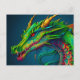 Diese Postkarte hat einen künstlerischen grünen Drachen darauf.