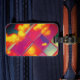 Dieses Gepäckanhänger hat ein künstlerisches Design auf ihnen.