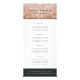 Elegante Kupfer-Rose und schwarzes Rack-Kartendesign zeigen Ihnen Ihre Dienstleistungen, Preislisten oder Geschäftsinformationen schön an. Das Design zeichnet sich durch einen Rand von goldblütigen Kupfer-Rose-Buchenbeleuchtung oben aus, wobei Ihr Name und/oder Ihr Firmenname überlagert ist. Enthält vier individuell anpassbare Überschriften und Textfelder sowie Platz für Ihre Kontaktinformationen, ganz unten, mit Holzkohle aus schwarzem Metall. Um das Layout anzupassen, geben Sie Ihren Text ein und ändern Sie mithilfe der Funktion Anpassen die Positionierung und die Größe des Schriftartes.