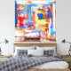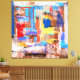 Kühne Striche mit lebendiger Blues, Rot und Gelb mischen sich mit erdigen Farbtönen, um eine dynamische und dynamische Komposition zu schaffen. Die abstrakten Muster und Splash bringen ein Gefühl von Bewegung und Spontaneität in das Stück.