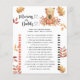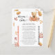 Feiern Sie mit diesem Herbst Teddy Bären thematisch Baby Dusche Party! Der niedliche Teddybär mit einem Herbstkürbis in seinen Pfoten sitzt im Herbstwald. Auf der Rückseite der Karte befinden sich Herbstblätter. Matching-Elemente verfügbar.
