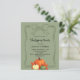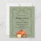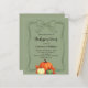 Ein moosgrüner Hintergrund. Mit Kürbissen dekoriert und mit einem handgezeichnet Bogen versehen. Personalisieren Sie die Party-Details und fügen Sie sie hinzu. 1 Blatt = 1 Einladung mit Druckkante bis Kante.