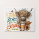 Friedliches, farbenfrohes Design mit Herbst/Herbst-Szene mit einem Kaffee, Herbst-Blume, Herbstlauben und einem Stier. Der farbenfrohe inspirierende Text lautet: "Kürbisgewürz und Jesus Christus". Dieses Design ist auf einer Vielzahl von Produkten erhältlich.