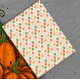 Zwirnpapier mit einem festlichen Halloween-Design, das ein lebendiges Kürbismuster zeigt. Die Farbpalette umfasst die klassische Halloween-Orange, das sonnige Gelb und eine Touch saisonales Grün. Dieses Papiertaschentuch eignet sich hervorragend, um Ihren Halloween-Geschenken, Kunsthandwerk oder Party-Dekorationen eine dekorative Touch zu verleihen, mit einem auffälligen und spielerischen Kürbismotiv in Orange, Gelb und Grün.