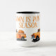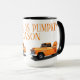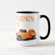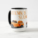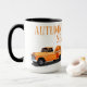 Einzigartiges Design der Tasse mit einem antiken, orangefarbenen LKW, gefüllt mit Herbst-Kürbissen mit "Kürbissaison". Personalisieren Sie diese, indem Sie Ihren Namen hinzufügen.