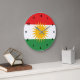 Flag of Kurdistan. The Flag of Kurdistan (Kurdish: Alay Kurdistan also called Alaya Rengîn "The Colorful Flag") first appeared during the Kurdish independence of Republic of Mahabad. It is currently used as the official flag of the autonomous Kurdistan Region in Iraq which is under control of the Kurdistan Regional Government. The flag is banned in Turkey, Iran and Syria. The main Kurdish characteristic of the flag is the blazing golden sun emblem at the center, which is an ancious and cultural symbol among the Kurds and synonymous with fire in representing wisdom in Zoroastrianism. The sun disk of the emblem has 21 rays, equal in size and shape. The number 21 Holds Bedeutung in the alten Ezidi Religious Traditionen of the Kurds. The symboism of the colors are: Red symbollizes the blood of martyrs of Kurdistan and the continued struggle for the freedom and dignity for Kurdistan and its people; Green expresses the beauty and the landscapes of Kurdistan; White expresses peace and equality; and Yellow represents the source of And People.
