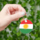 Flag of Kurdistan. The Flag of Kurdistan (Kurdish: Alay Kurdistan also called Alaya Rengîn "The Colorful Flag") first appeared during the Kurdish independence of Republic of Mahabad. It is currently used as the official flag of the autonomous Kurdistan Region in Iraq which is under control of the Kurdistan Regional Government. The flag is banned in Turkey, Iran and Syria. The main Kurdish characteristic of the flag is the blazing golden sun emblem at the center, which is an ancious and cultural symbol among the Kurds and synonymous with fire in representing wisdom in Zoroastrianism. The sun disk of the emblem has 21 rays, equal in size and shape. The number 21 Holds Bedeutung in the alten Ezidi Religious Traditionen of the Kurds. The symboism of the colors are: Red symbollizes the blood of martyrs of Kurdistan and the continued struggle for the freedom and dignity for Kurdistan and its people; Green expresses the beauty and the landscapes of Kurdistan; White expresses peace and equality; and Yellow represents the source of And People.