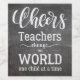 Lehrer Wertschätzung Geschenk mit weißen Typografie-Skript "Lehrer verändern die Welt ein Kind nach dem anderen" inspirierende Zitat und Beifall auf schwarzen Brett Hintergrund.