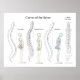 Kurven des Wirbelgeplänkers Chiropraktik. Normale und abnorme Kurven des Wirbelsäulenposters. Zeigt die seitliche Sicht einer normalen Wirbelsäulenkurve, Lordose, Kyphose und abnormaler seitlicher Krümmung. Zeigt die Haltungsänderungen.