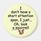 "Ich habe keine kurze Aufmerksamkeitsspanne, ich.. Oh, schau mal ein Eichhörnchen!" Funny Sprichwort / Zitat über oft abgelenkt und/oder vergesslich. Schwarzer Text / Buchstaben mit hellbeige / braun Hintergrund, dass Sie zu jeder Farbe ändern können. —