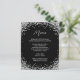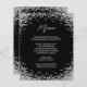 Ein kreisförmiger Rand aus Imitaten silbernen Glitzer gegen eine anpassbare solide schwarze Hintergrundfarbe. Ein minimalistisches Menü Text Design für Ihre besondere Veranstaltung oder Hochzeit. Die Imitats Glitzer druckt wie ein Foto auf diesen Haushaltsmenüs.