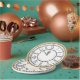 Auf dieser Papierplatte befindet sich eine schwarze Uhr mit römischen Ziffern auf weißem Hintergrund. Um den Rand der Platte ist ein Imitat goldener Rand. Im Inneren der Uhr steht: "Küss mich um Mitternacht." Ideal für Silvester oder jede andere formelle Ansammlung.
