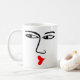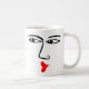 Eine Tasse mit einem wütenden, hochtrabenden Küssen. Das Gesicht wird auf beiden Seiten wiederholt.