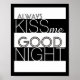 Küss mir immer Goodnight Poster fette Streifen in schwarz und weiß mit Text.