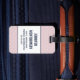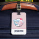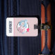 Personalisierter Gepäckanhänger mit einem niedlichen Cartoon von einem Bärenpaar, der Bär ist pastellrosa mit einem kleinen Bogen und küsst die Wange eines blauen Bären, der sehr erfreut aussieht. Ein kleines rosa Herz schwebt über ihren Köpfen. Sehr niedlich und Kawaii. Das Hintergrundmuster ist eine gedämpfte rosa Farbe mit weißen Polka-Punkten.