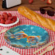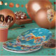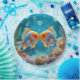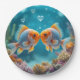 In einer faszinierenden Unterwasserwelt teilen sich zwei Goldfische einen zarten Kuss, umgeben von skurrilen, herzförmigen Blasen, die sanft zur Oberfläche treiben.