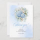 Boho-Hochzeit-Dankeskarten mit blauen Hortensien-Wasserfarbenblumen und Eukalyptus-Grün, professionell gedruckt von Zazzle auf Premium-Karton mit knackigen Details, reichen Farben und einer glatten eleganten Oberfläche.